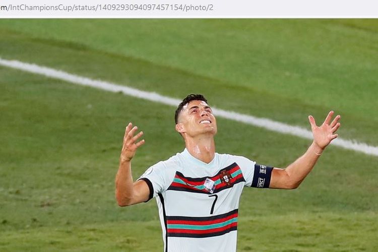 Megabintang timnas Portugal Cristiano Ronaldo, tersingkir dari EURO 2020, kantor Coca-Cola penuh kebahagiaan. (TWITTER.COM/INTCHAMPIONSCUP)