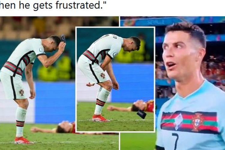 Usai salam gelandang Belgia, Kevin De Bruyne, Cristiano Ronaldo membuang dan menendang ban kapten Portugal di EURO 2020. (TWITTER.COM/SPORTBIBLE)BOLASPORT.COM - Usai salam gelandang Belgia, Kevin De Bruyne, Cristiano Ronaldo membuang dan menendang ban kapten Portugal di EURO 2020.