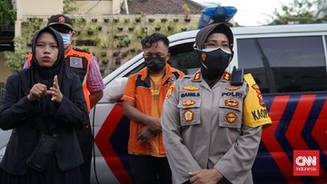 Terduga provokator kericuhan di Kenjeran Surabaya mengenakan rompi oranye. (CNN Indonesia/Farid)Surabaya, CNN Indonesia --