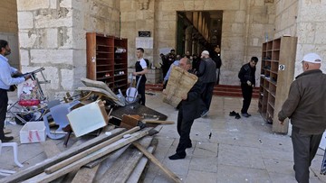 Masjid Al-Aqsa porak-poranda usai bentrokan pasukan Israel dengan warga Palestina. (AFP/AHMAD GHARABLI)