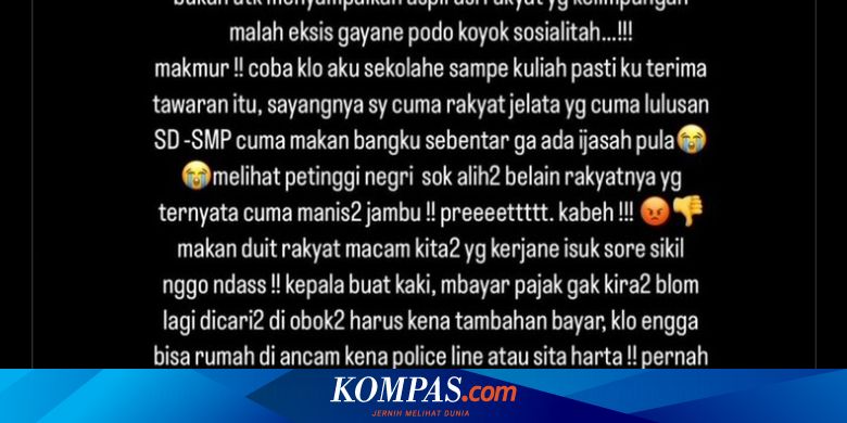 "Kepala buat kaki, bayar pajak enggak kira-kira, belum lagi dicari-cari diobok-obok harus kena tambahan bayar, kalau nggak bisa rumah diancam kena police line atau sita harta," tulis Inul.