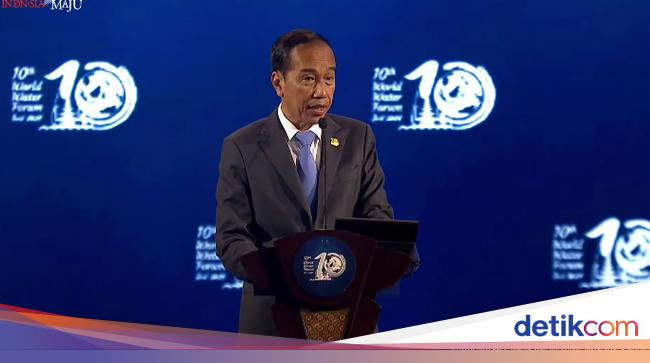 Hal ini disampaikan Jokowi saat memberi sambutan dalam KTT WWF-ke 10 di Mangapura Hall BICC, Senin (20/5/2024). Jokowi awalnya menyampaikan kondisi 72 persen permukaan bumi yang tertutup air. Jokowi mengatakan hanya 1 persen yang bisa diakses untuk air minum dan keperluan sanitasi.