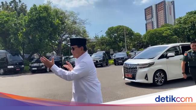 Pantauan detikcom di Kompleks Istana Kepresidenan, Jakarta, Senin (8/7/2024), Prabowo terlihat tiba sekitar pukul 12.32 WIB. Dia terlihat mengacungkan dua jempol saat ditanya kondisi kesehatannya usai operasi cedera kaki.