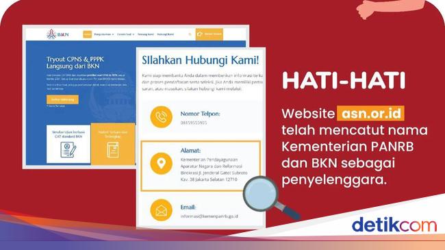 "Hati-hati, website asn.or.id telah mencatut nama Kementerian PANRB dan BKN sebagai penyelenggara," lanjutnya.