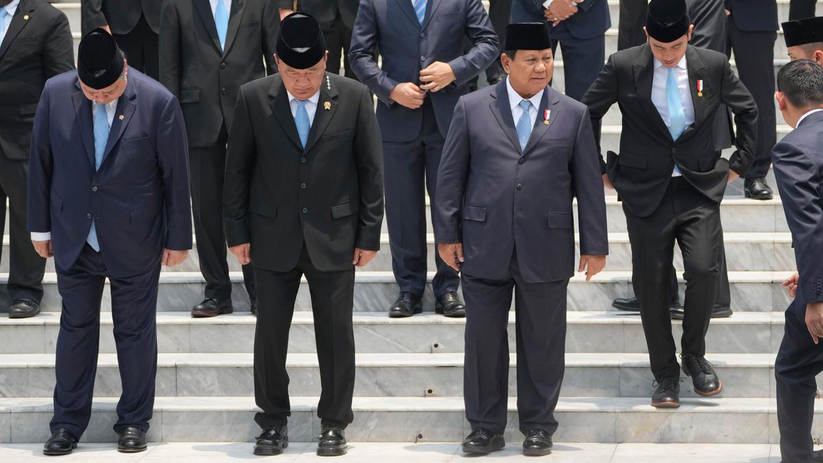 Sebelumnya, Presiden Prabowo Subianto secara resmi melantik 48 menteri negara dalam Kabinet Merah Putih. (AP Photo/Achmad Ibrahim)