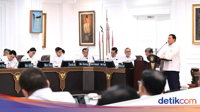 Sidang berlangsung di Istana Kepresidenan, Jakarta, Rabu (22/1/2025). Sidang dihadiri Wapres Gibran Rakabuming Raka, para menko, menteri, wakil menteri hingga kepala badan. Berikut sejumlah arahan Prabowo: