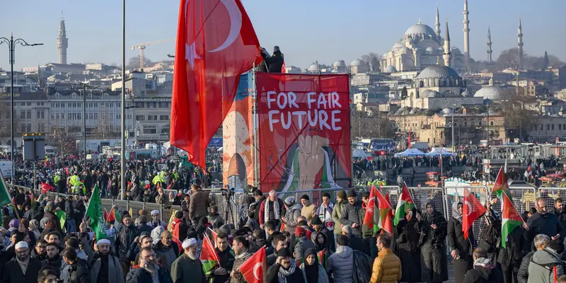 Hari Pertama 2025, Masyarakat Turki Gelar Unjuk Rasa Desak Penghentian Genosida di Gaza - Photo Liputan6