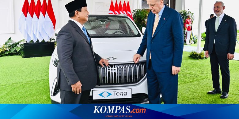 JAKARTA, KOMPAS.com - Presiden Turkiye Recep Tayyip Erdogan memberikan satu unit mobil listrik Togg T10X kepada Presiden RI, Prabowo Subianto, sebagai simbol persahabatan dan hubungan erat antara kedua negara.