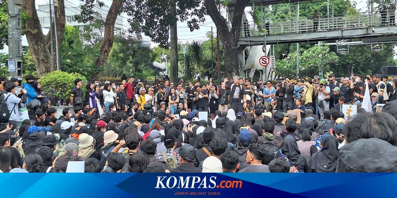 Massa Aksi Indonesia Gelap Nyanyikan Lagu Sukatani "Bayar, Bayar, Bayar" di Patung Kuda - Kompas
