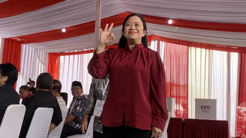 Ketua DPP PDIP Puan Maharani mengaku optimistis paslon nomor urut 03 Pramono Anung-Rano Karno dapat menang satu putaran di Pilkada Jakarta 2024. (Liputan6.com/Delvira Hutabarat)... Selengkapnya