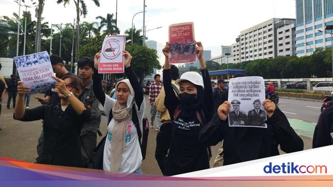 Aksi Tolak Revisi UU TNI di DPR, Massa Serukan 'Selain Sipil Dilarang Masuk' - detik