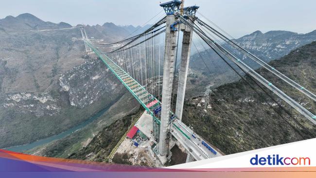 China bakal memiliki jembatan tertinggi di dunia bernama Jembatan Huajiang Canyon yang segera rampung pada Juni. Jembatan gantung itu memiliki tinggi 2.051 kaki yang berlokasi di atas ngarai dan hanya dibangun dalam waktu tiga tahun saja.