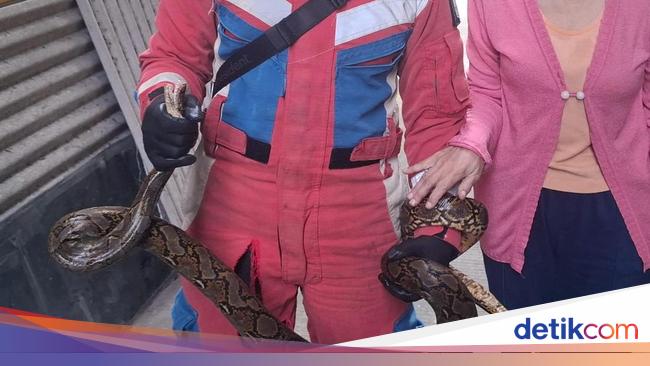 "Setelah dipancing dengan makanan, keluar seekor ular sanca. Selanjutnya melaporkan kejadian tersebut ke tim damkar untuk meminta bantuan penanganan," ujarnya.