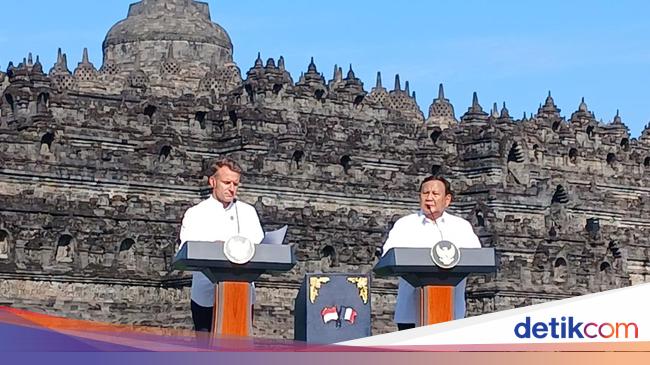 "Candi Borobudur, selain dipakai sebagai tempat ibadah, juga adikarya spiritual arsitektur yang merupakan bukti keunggulan peradaban Indonesia," ujar Macron dalam joint statement dengan Presiden RI Prabowo Subianto di Candi Borobudur, Magelang, Jateng, Kamis (29/5/2025).