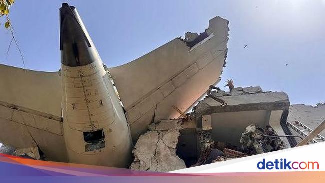 Dilansir AFP, Kamis (12/6/2025) berdasarkan foto dari Central Industrial Security Force (CISF) tampak bagian ekor pesawat Air India berada di tengah-tengah bangunan. Sementara petugas masih melakukan evakuasi.