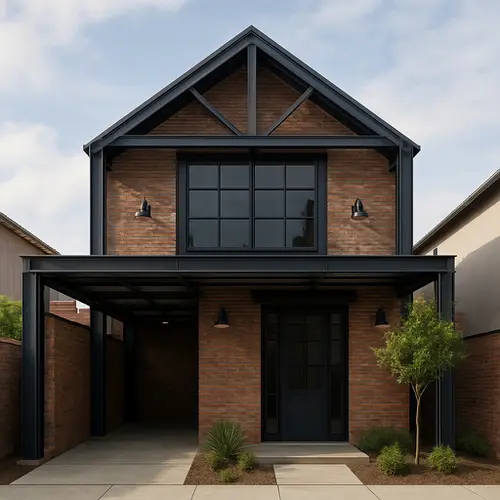 Gaya industrial identik dengan kesan maskulin, kokoh, dan berkarakter. Rumah minimalis industrial di tahun 2025 memadukan elemen-elemen seperti dinding bata ekspos, struktur baja terbuka, dan pencahayaan bergaya pabrik. Desain ini sangat cocok untuk mereka yang menginginkan rumah unik dan berani tampil beda.