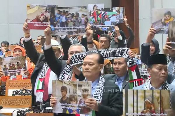 Anggota DPR Gelar Aksi Dukung Palestina di Paripurna, Angkat Poster #StopGenocide - Inews