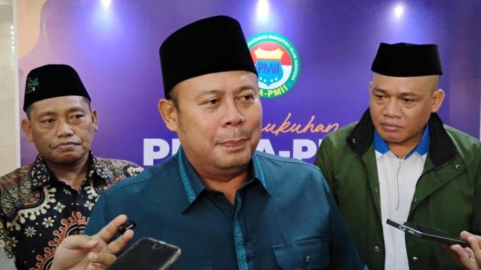 BERAS OPLOSAN - Wakil Ketua DPR RI Cucun Ahmad Syamsurijal saat ditemui awak media di Kawasan Pancoran, Jakarta, Minggu (13/7/2025). Cucun merespons soal fenomena beras oplosan kemasan premium beredar di pasar.