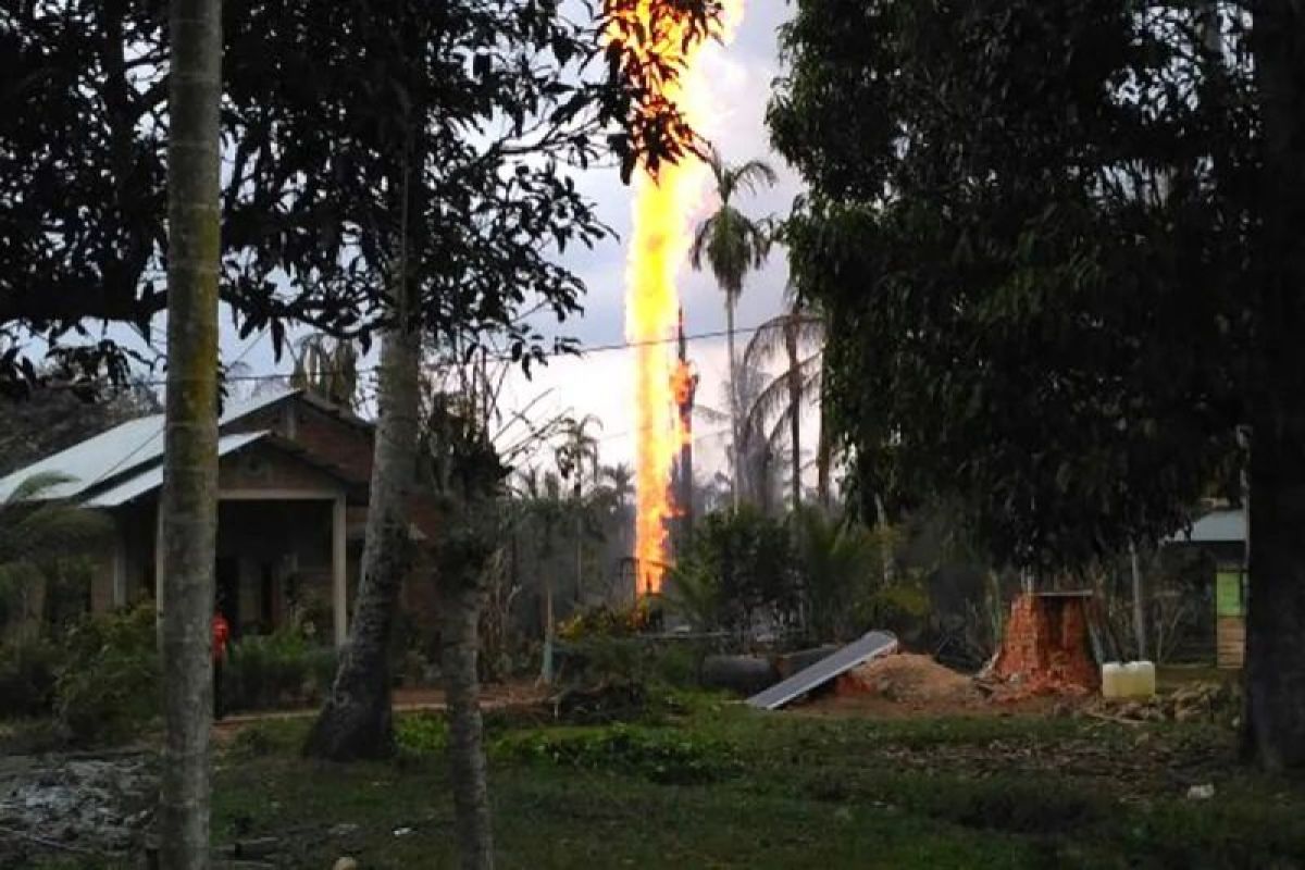 Ilustrasi - Kobaran api membubung tinggi di lokasi kebakaran sumur minyak illegal di Desa Pasi Puteh, Rantoe Peureulak, Aceh Timur, Aceh. (ANTARA FOTO/Maulana)