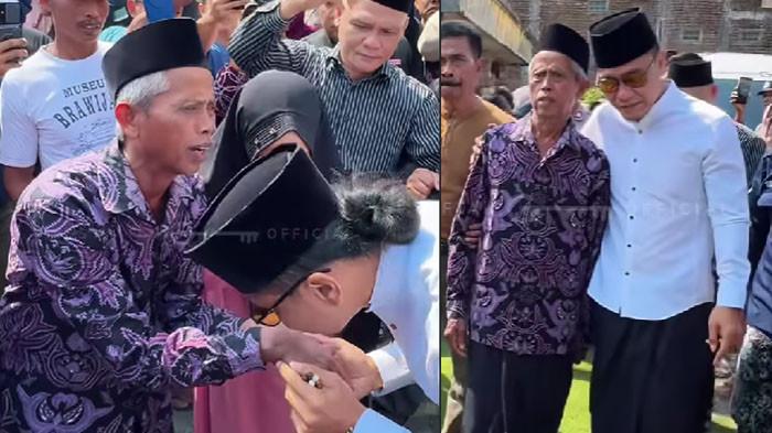 Bukan untuk berceramah, melainkan untuk mencium tangan Ahmad Zuhdi, seorang guru Madrasah Diniyah (Madin) yang wajahnya basah oleh air mata haru.
