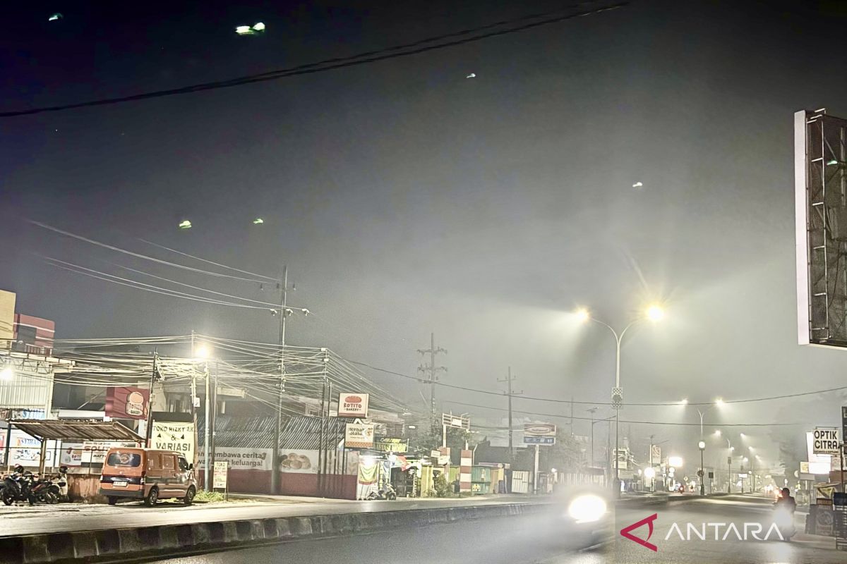 Banjarbaru (ANTARA) - Kabut asap akibat kebakaran hutan dan lahan (karhutla) muncul di kawasan Jalan Ahmad Yani, Landasan Ulin Barat, Kecamatan Liang Anggang, Kota Banjarbaru, Kalimantan Selatan, pada Jumat dini hari.
