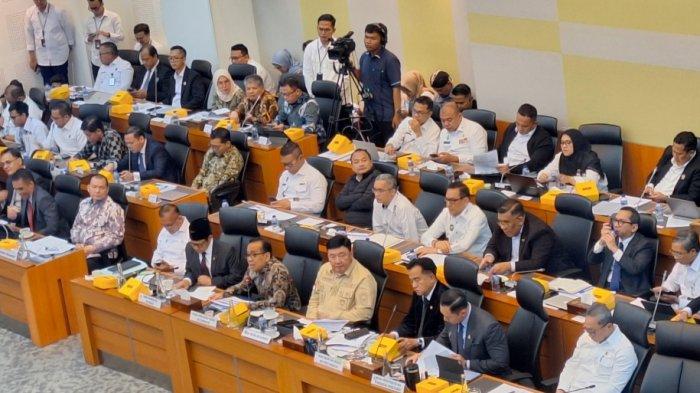 RAPAT DENGAN DPR - Rapat Badan Anggaran (Banggar) DPR RI dengan beberapa kementerian di kompleks parlemen, Senayan, Jakarta, Senin (7/7/2025). Hadir juga Menko Polkam, Budi Gunawan.