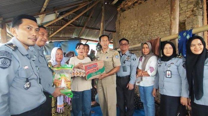 Hadir sejumlah pegawai Lapas dan memberikan bantuan sembako.