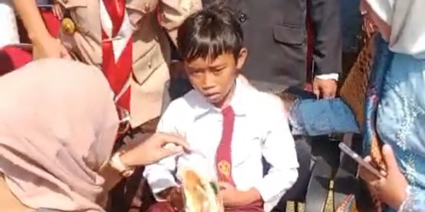 Bikin Haru, Bocah SD Panjat Tiang Bendera 12 Meter Saat Upacara HUT RI ke-80 - Merdeka
