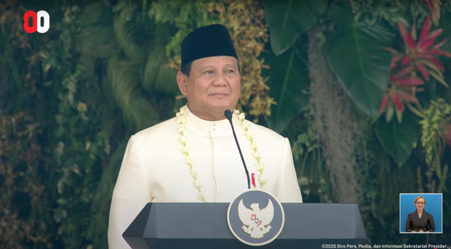 Presiden Prabowo Subianto menjadi inspektur upacara HUT ke-80 RI di Istana Merdeka Jakarta, Minggu (17/8). Bendera Merah Putih sudah dikibarkan sekitar pukul 10.25 WIB.