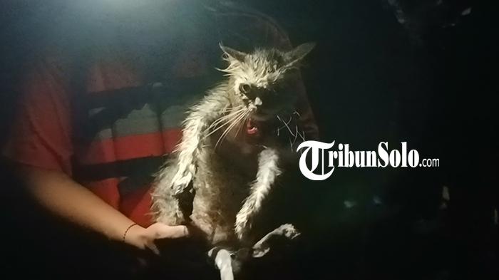 Masih Hidup Setelah Dua Hari Tercebur Sumur Sedalam 8 Meter, Kucing di Sragen Dievakuasi - Tribunsolo