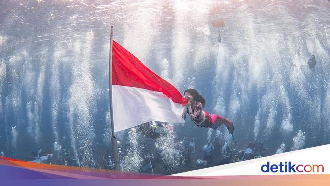 Upacara yang digelar Sabtu (16/8), dipimpin Ketua WASI, Tri Tito Karnavian dan diikuti sekitar 120 penyelam serta kehadiran Gubernur Maluku Utara, Sherly Tjoanda, yang melakukan freediving. Sherly mengenakan kostum ikan duyung sambil membawa bendera untuk diserahkan kepada inspektur upacara di bawah laut Laut Sulamadaha, Ternate. (Instagram)