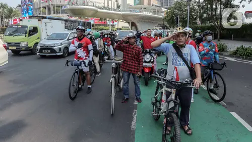 Pengendara berhenti selama tiga menit saat prosesi mengheningkan cipta untuk menghormati detik-detik proklamasi dalam HUT ke-78 Kemerdekaan RI di kawasan Bundaran HI, Jakarta, Kamis (17/8/2023). (Liputan6.com/Faizal Fanani)... Selengkapnya