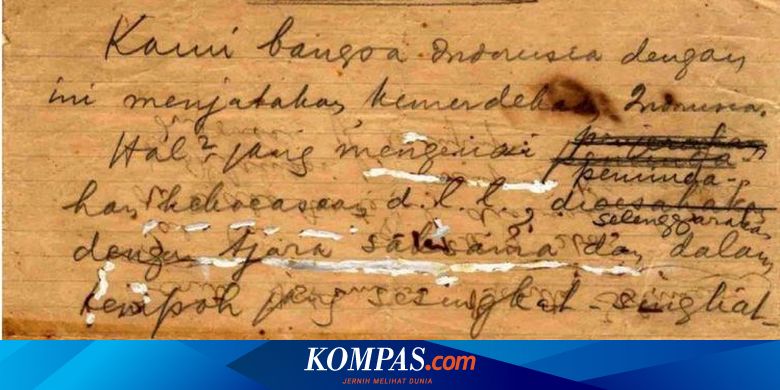 Sempat Hampir Hilang, Di mana Naskah Proklamasi Asli Tulisan Tangan Soekarno Sekarang? - Kompas