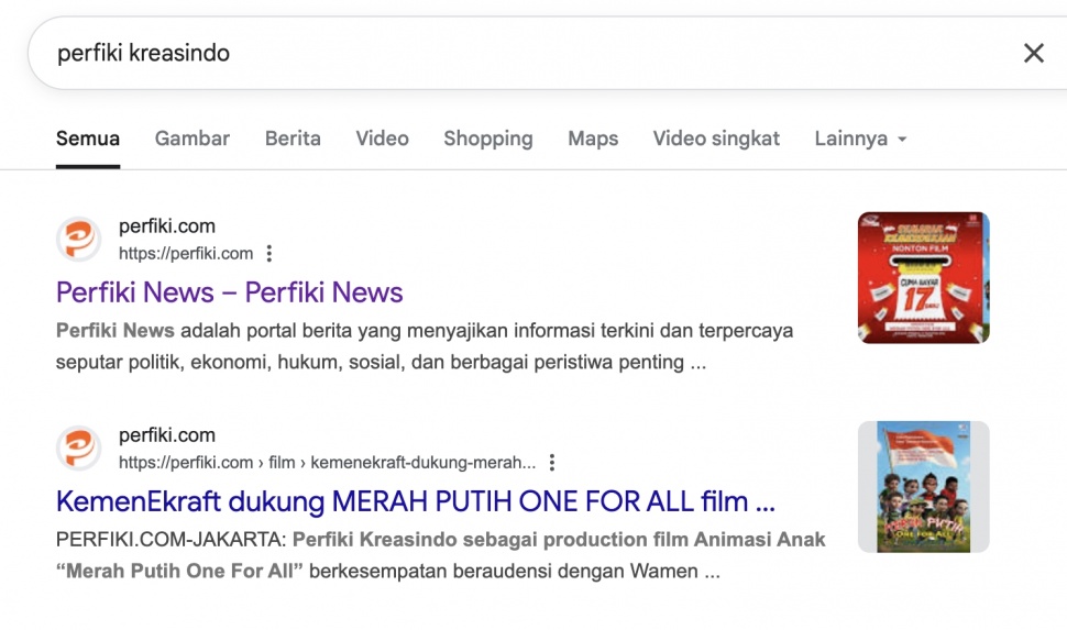 Ada satu laman yang merujuk pada Perfiki Kreasindo, yakni perfiki.com.
