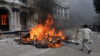 FOTO: Kantor PM hingga Gedung Parlemen Nepal Diamuk Massa