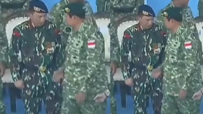Ia tampak datang dari sisi kanan panggung dan menyalami sejumlah pejabat tinggi TNI.