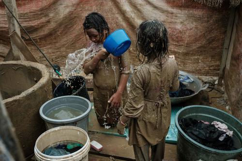 Berbagai gangguan kesehatan tersebut tidak terlepas dari kondisi lingkungan pasca-banjir yang masih tercemar. Tampak dalam foto, Baiti Arafah (kiri), 10 tahun, membersihkan diri dengan air sumur setelah bermain di genangan lumpur bersama adik perempuannya, Ria Mulyati Sara (7), di Babo, Aceh Tamiang, pada Senin 15 Desember 2025. (Yasuyoshi Chiba/AFP)